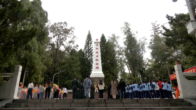 烈士陵园内,烈士纪念碑巍峨耸立,四周苍松翠柏环绕,气氛庄严肃穆。上午10时许,祭扫活动开始。全场肃立,面向革命烈士纪念碑,向人民英雄默哀,表达敬意和缅怀之情。活动主持人简要讲述解放县城龙仙的战斗历史及圆墓中30位烈士的由来。