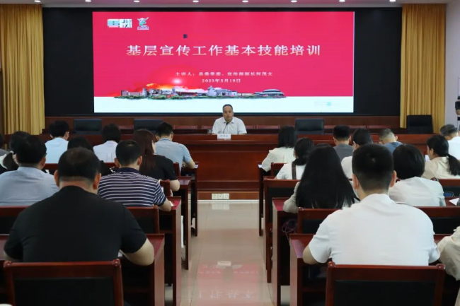 为了适应新时代宣传文化工作,进一步提高基层宣传干部的综合素质和业务水平,努力打造一支政治过硬、本领高强、求实创新、能打胜仗的基层宣传文化队伍。5月19日上午,翁源县举行基层宣传工作基本技能培训,培训由县委常委、宣传部部长何茂文授课,各镇宣传委员及干事、县融媒体中心相关同志、县委宣传部全体干部50余人参加培训。