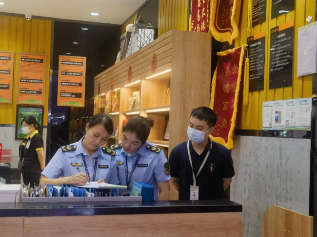 活动中,执法人员检查了食品经营单位是否取得经营资格情况,包括商场的营业执照和食品经营许可证,重点检查是否存在超范围经营、食品经营许可证是否过期等。同时,执法人员还重点检查了企业食品进货查验记录、进货票据、是否索取并留存上游供货商的食品生产经营许可证或小作坊登记证,以及产品出厂检验合格证、送货单或购销票据是否与现场的湿粉类食品相符等情况。