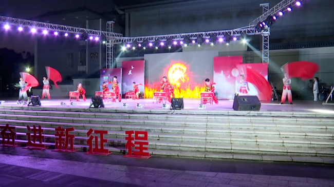 晚会在武术、跆拳道表演团带来的《欢乐中国龙》中拉开了序幕,绚烂的聚光灯下,红旗舞动,鼓声阵阵,现场的热闹气氛瞬间被点燃了。