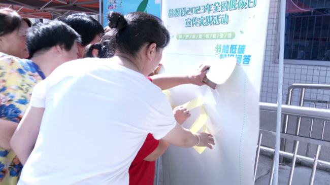 社区居民 戴滔吟:今天学到很多环保知识,然后在生活中我们可以低碳出行、多植树造林,然后文明用餐、节约粮食等。