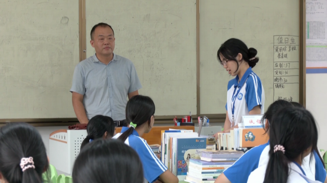 胡迪亮也积极探索改变传统的“保姆式” “警察式”的班级管理模式,2019年上半年,在全校率先推行学生自主管理模式,充分发挥学生的自主管理作用,也让老师的角色从“管理者”转化为“学生服务者”。他从卫生工具摆放、学生桌面布置、人离座椅归位、学生仪容仪表等入手,给予学生代表自主权和责任感,由学生代表来管理学生,并通过检查评比等形式规范学生的日常行为。