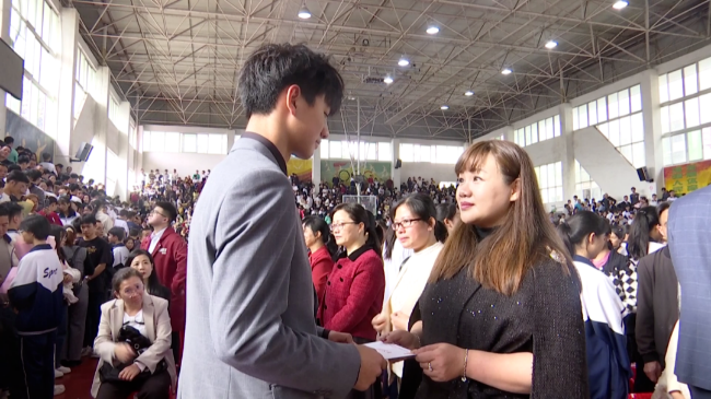 在感恩礼环节,学生首先向父母行感恩礼,感谢父母的养育之恩,并呈献成长家书,不少家长流下激动又欣慰的泪水,也把声声祝福送给孩子,为孩子佩戴好成人徽章,鼓励孩子们收获属于自己的无悔青春。接着,学生向师长行感恩礼,表达对恩师的敬意和感激之情,老师也把祝福送给学生,祝愿他们在成长的道路上充满自信和力量,不断锤炼本领,拥有美好未来。