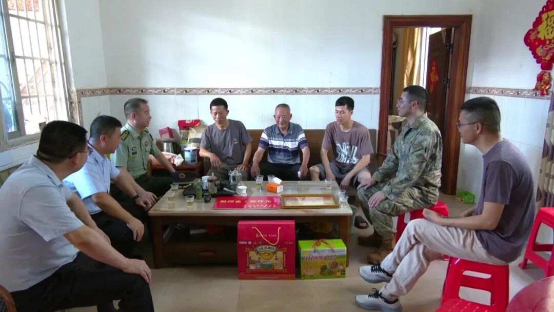 6月10日上午,县委常委、县人武部政治委员滕召林,县退役军人事务局及江尾镇有关负责同志率队来到江尾镇九仙村,为荣获三级表彰的现役军人王海林家属送上立功喜报,传达党和政府的关心慰问。