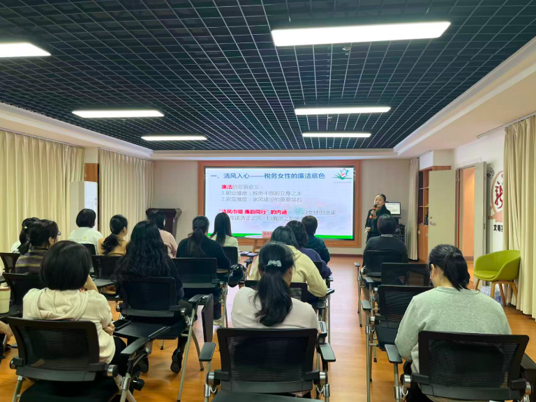 活动中,曾齐全老师结合税务女职工工作特点,以“压力管理与情绪调控”为切入点,通过案例分析、互动游戏等形式,深入浅出地讲解了职场压力来源、情绪识别方法及疏导技巧。在廉洁教育环节,她将心理健康与廉洁修身相结合,剖析“微腐败”背后的心理诱因,引导女职工树立“廉洁从政、廉洁持家”理念,做到以廉养心、以心促行。