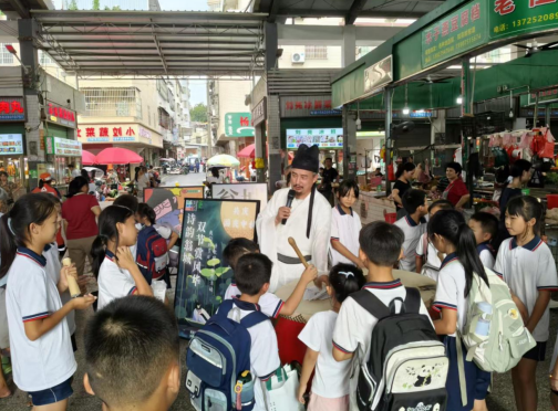 活动刚开始,擂台周围就挤满了前来买菜的居民和各年龄段的围观群众。活动现场,最活跃的当数中小学生们,他们争先恐后地上前,流利背诵出《初春小雨》《四时田园杂兴》等经典诗词,赢得阵阵掌声;有的虽一时卡壳,但那认真投入的劲头和积极参与的热情,反而引来了台下观众鼓励的微笑。这份略显生涩却又无比真挚的参与感,正是诗歌种子在学生们心中萌芽的可贵见证。