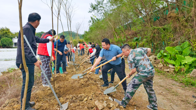 活动现场,一派热火朝天的劳动景象。在镇领导班子的带头示范下,大家热情高涨、分工明确、配合默契,挥锹铲土、扶苗正根,每一个动作都认真细致、有条不紊。欢声笑语间,一棵棵新栽种的树苗迎风挺立,为突水村增添了一抹生机盎然的新绿。
