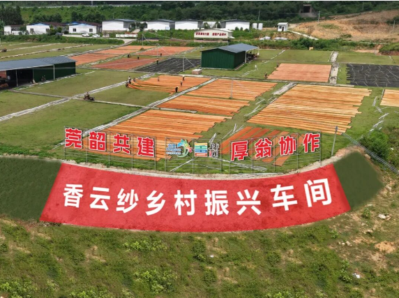 2023年3月,工作队投入40万元帮扶资金,推动上洞村500余亩废弃蚕桑园实现“华丽转身”,带动翁源县香云雅韵薯莨加工厂正式落地,建成7个标准化生产车间和200亩晒布场。如今,该项目已带动上百名村民实现“家门口就业”,旺季日薪超400元,部分工人月薪破万元;同时通过土地租金、厂房管理费及村集体入股分红等方式,每年为辉星村、上洞村等集体经济增收约40万元,真正实现企业、村民、村集体三方共赢。